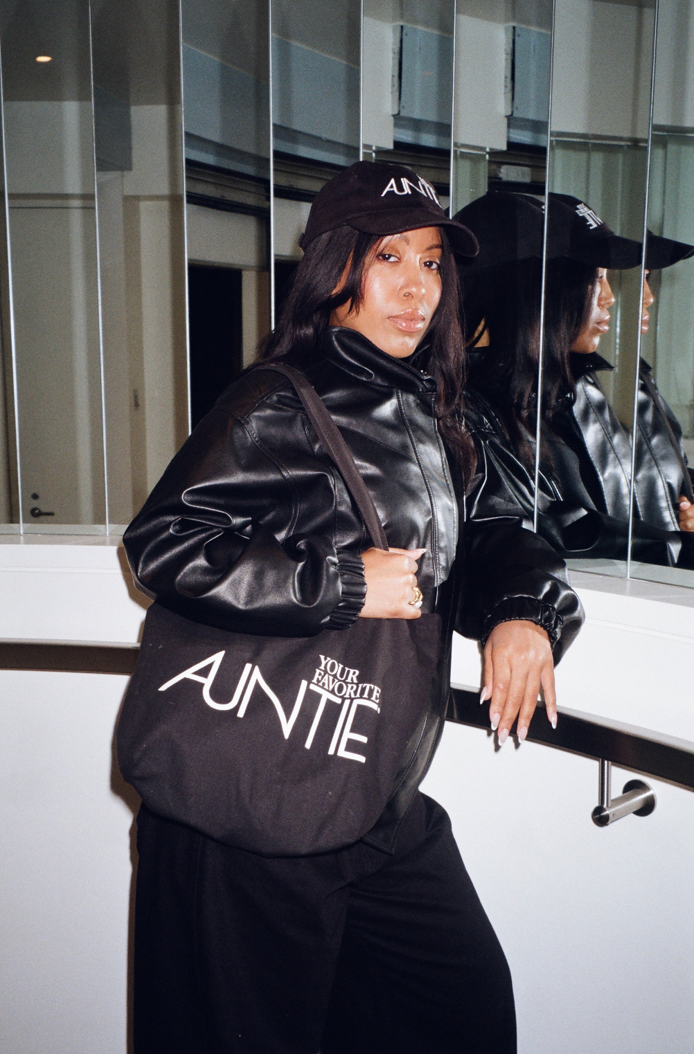 Top off the look with Auntie energy.